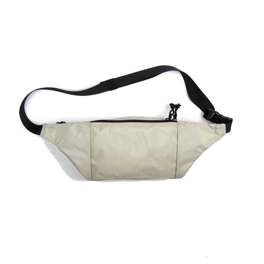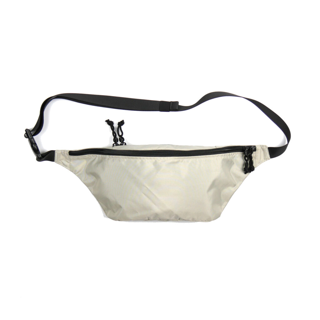 ・ボトルやタオルも収まるサイズのウエストバッグ。(46cm x 15 ㎝ x 6cm、容量約 1.1L)
